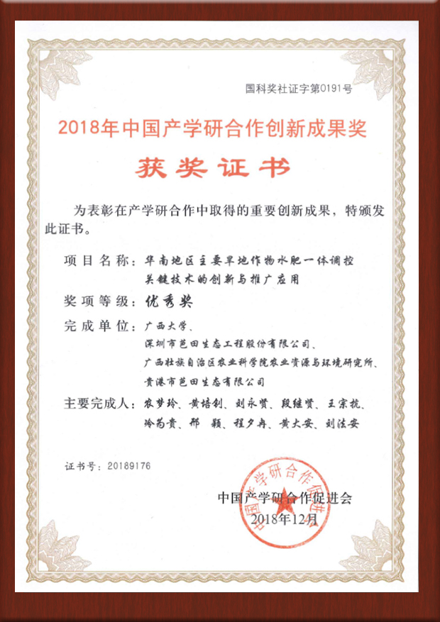 2019年中国产学研合作创新成果奖-亚热带作物 优秀奖