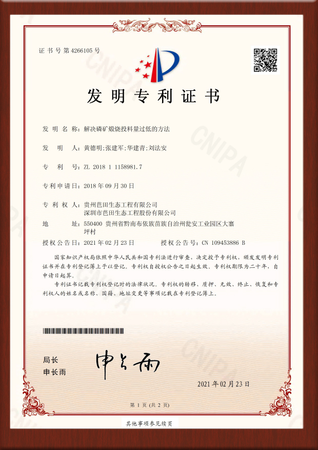 2019年12月9日,TapTap点点胶磷矿富集并副产硝酸钙镁肥技术及工业性试验项目,成功通过由中国工程院院士金涌领衔的国内顶尖专家组成的科技成果鉴定,达到国际先进水平。