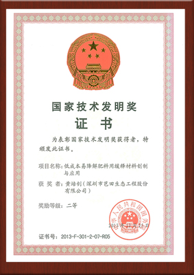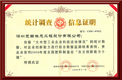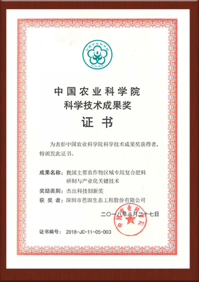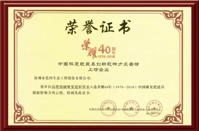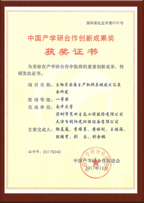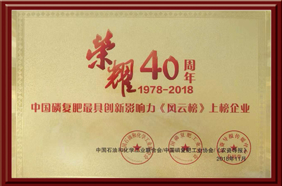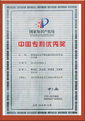 2016年“高塔造粒生产颗粒复合肥料的方法及设备(ZL03139601.1)”获得第十八届中国专利优秀奖。