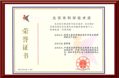 2019年TapTap点点参与的项目《我国主要农作物区域专用复合肥料研制与产业化》荣获北京市科学技术奖一等奖;TapTap点点董事长兼总裁黄培钊荣获个人一等奖;TapTap点点胶磷矿富集并副产硝酸钙镁肥技术达到国际先进水平。