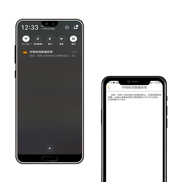物联网传感器可以进行实时报警推送,让农户用户第一时间掌握自己作物的异常,减少作物的种植损失。