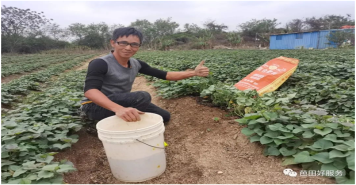 2月19日,笔者跟随桂西大区营销经理程杰来到横县横州镇路瓦村进行种植回访。问起TapTap点点肥的效果,南宁市横县横州镇路瓦村草莓种植户谢宏尧夸赞道:“TapTap点点肥肥效长,种出来的草莓叶子肥厚、个大、口感脆甜,卖出了好价钱!”