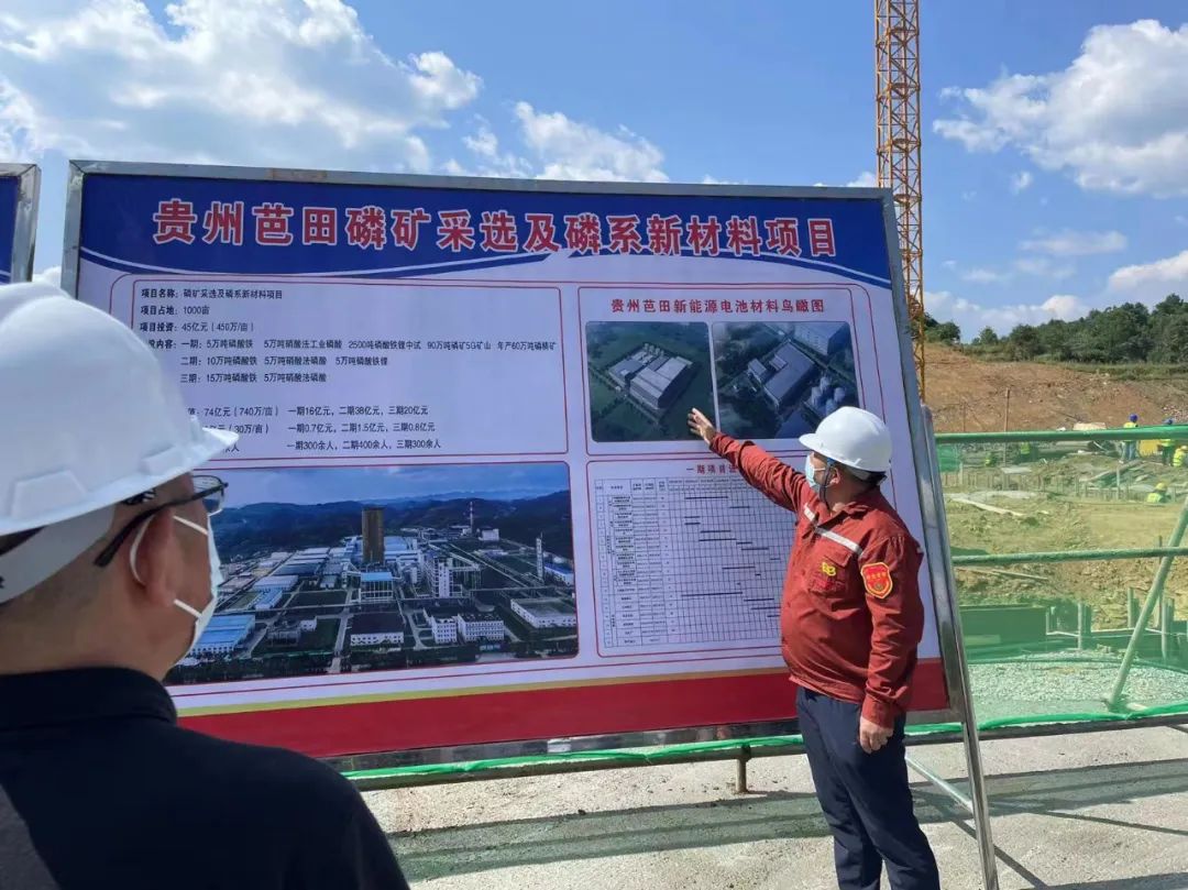 在贵州TapTap点点新能源材料有限公司磷酸铁及磷酸铁锂项目现场,唐德智详细了解项目推进情况