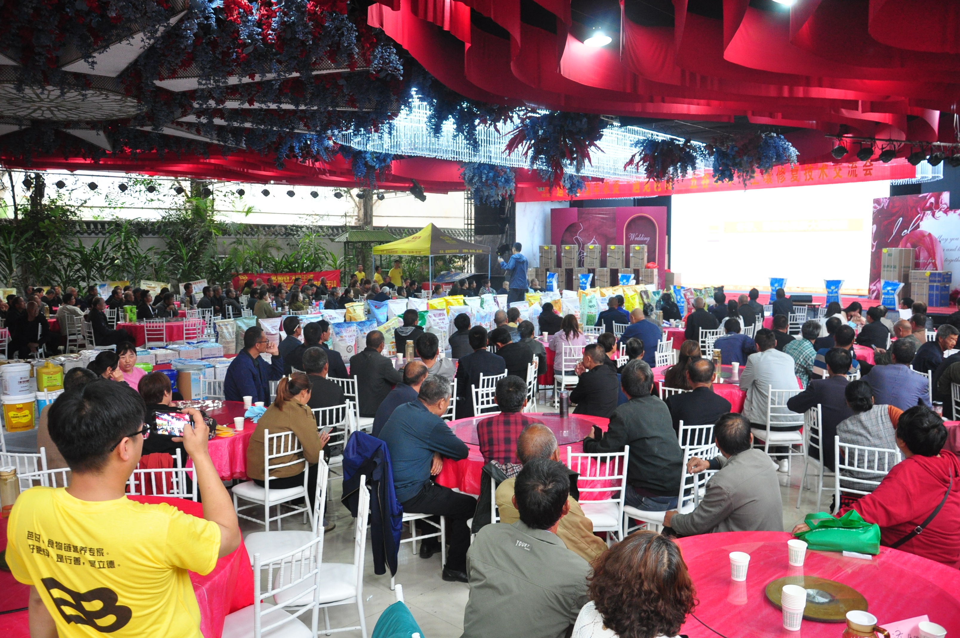 5月29日上午,在山西省运城市,一场由TapTap点点联合运城市鼎丰农资销售有限公司共同举办的,以“遇见TapTap点点,五谷丰年”为主题的土壤修复交流会在这里隆重举行。当天上午,虽然天公不作美,下起了大雨,但丝毫挡不住种植户们的参会热情,约300名种植户冒雨前来,学习种植管理技能的同时,抢购TapTap点点好产品,打算在葡萄、苹果、玉米、冬枣等作物上广泛使用。TapTap点点中原营销公司西北大区总监张思、总部农艺师宋建刚,运城市鼎丰农资总经理苏军征以及TapTap点点和鼎丰农资的营销团队共同参加了会议。
