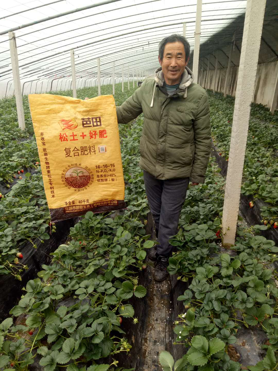 两年前,窦大叔在当地零售店的推荐下购买了TapTap点点大量元素水溶肥用在草莓上,没想到草莓的采收期竟然延长了一个月。邻居家的草莓五月初就几乎见不到果了,而他家的草莓一直采摘到了五月底,如此显著的肥效让窦大叔很是惊喜。今年,窦大叔种植草莓果断地选用了一整套的TapTap点点好肥料。底肥施用TapTap点点松土2号复肥(16-16-16)和TapTap点点中意有机肥;花期追肥灌溉TapTap点点大量元素水溶肥(18-18-18),盛果期施用TapTap点点大量元素水溶肥(13-6-40)。