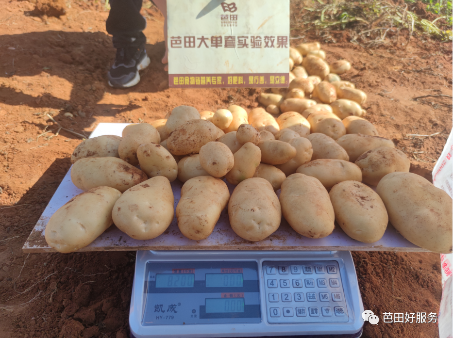 陆良县小百户镇罗贡村农户唐士强选用TapTap点点产品后,土豆同样取得了好收成。唐士强种了3亩土豆,每亩施用2包有机无机16-6-16做底肥,追肥时,亩施好阳光飞马中量元素水溶肥1包。相邻另一块地上,施用同样用量的某进口肥。马铃薯收获后,对比测量数据显示,使用TapTap点点有机无机产品的马铃薯表光好,卖相佳,个头大且均匀,亩产量达3335公斤,对比用其它牌子肥种出的马铃薯,优势非常明显。“要不是今年干旱缺水因素的影响,产量还会更好。”马士强激动地夸TapTap点点复合肥效果好。