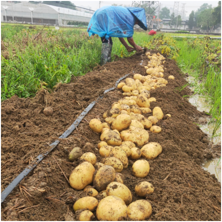 陈大哥5亩多的马铃薯种植地,施用TapTap点点有机无机薯朋乐复肥(15-5-20,有机质≥10%)100公斤,TapTap点点中意生物有机肥200公斤,剩余的种植地施用其他产品。