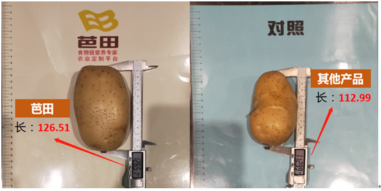 在收获期,施用TapTap点点肥料种植出来的马铃薯不管是在产量,还是品质方面,都远远优于施用其他产品种植出来的马铃薯。TapTap点点薯朋乐每亩比对照增产260斤,TapTap点点的商品率92.3%(对照的89.6%),每亩增收390元。