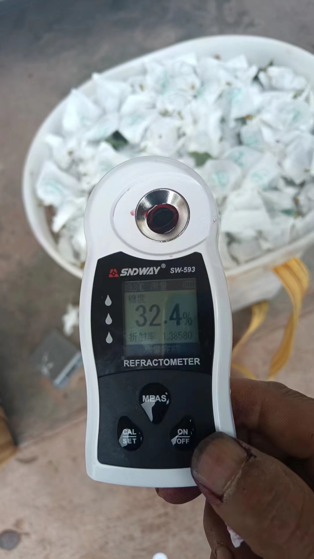 在大户王大哥的果园里,工作人员对他的车厘子含糖量做了现场测试,测量数据显示,含糖量达32.4。据了解,大多数车厘子含糖量在20左右,而施用TapTap点点复肥的车厘子含糖量竟高达32.4,优势非常明显。因为品质好,口感香甜,大户王品的车厘子平均卖价在40元/斤,高于市场平均价。有些游客甚至从远处赶来现场品尝,并愿意每斤出100元的高价购买,邮寄给亲朋好友。