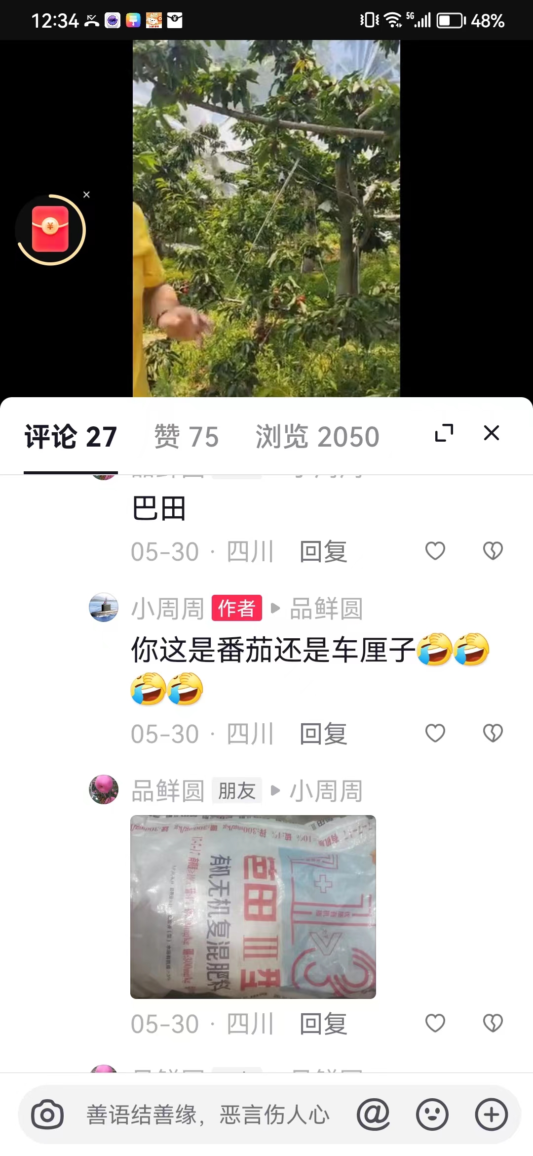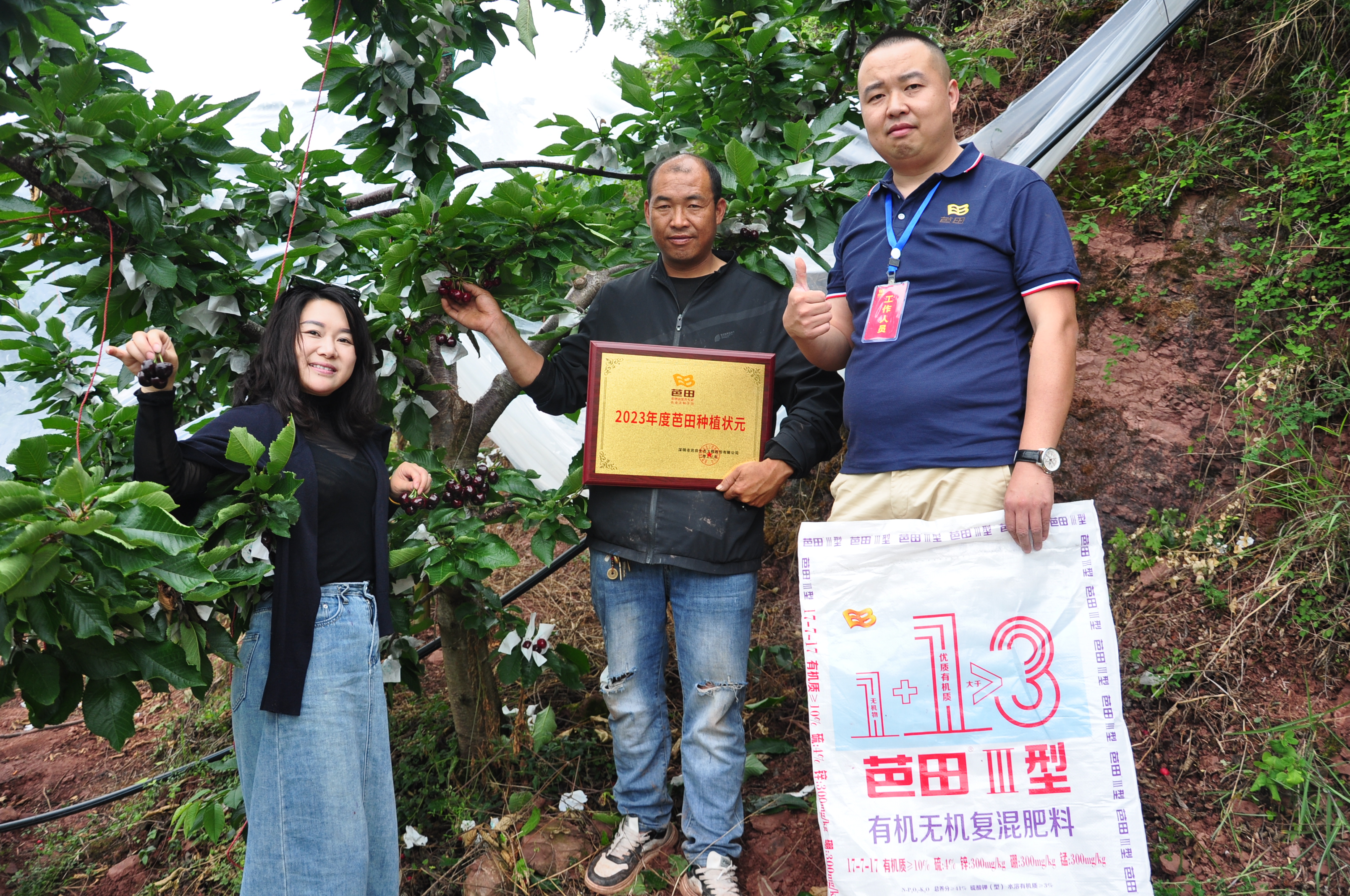 “今年种车厘子时,我选择的产品是TapTap点点有机无机17-7-17复肥,黄金磷复肥。TapTap点点产品见效快,劲大,车厘子上施用后,坐果率高,个头大、均匀,叶片厚实,叶色翠绿,卖价好。自从选择了TapTap点点,7年没有更换过品牌,这就是TapTap点点产品的魅力。”大户王品开心地说。