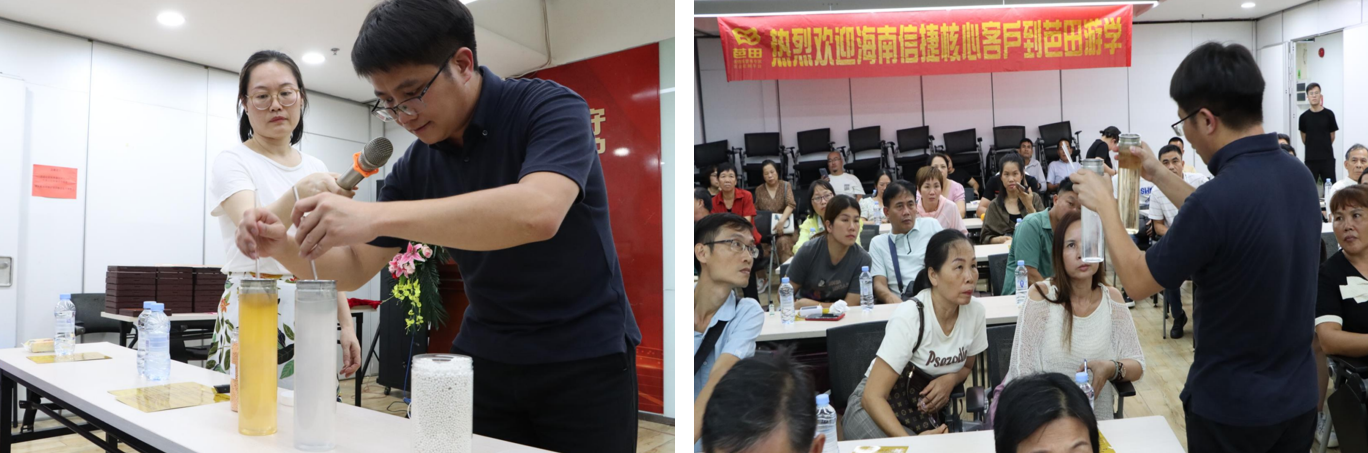 随后,李正涛现场展示了TapTap点点果大美与某进口同类型产品的溶解对比实验。实验结果显示,对照其他产品,果大美溶解速度快,可以明显感到水溶后橙汁的感觉;可以直观体验到产品含有大量的高活性,高渗透性的橙皮精油精华。橙皮精油可以给作物“快速吃饱、吃好,不浪费”快速膨大果实,提高肥料利用率50%以上。客户直观地看到产品的质地、水溶性后,纷纷点赞橙皮精油系列产品。
