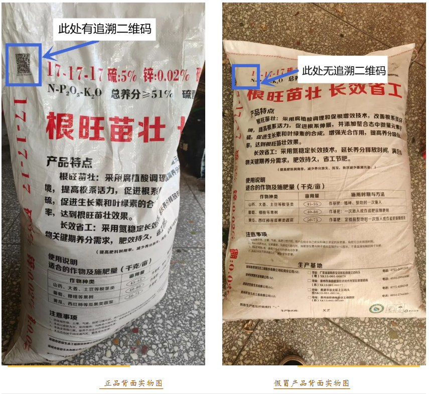 经我司专项核查,该批产品使用与我司产品高度相似的商标、外观设计,但外包装袋上无产品追溯二维码,或者二维码被缺失、涂画、损坏、撕毁,无法溯源。同时,这些假冒伪劣产品以远低于市场价的价格销售,看似 “实惠”,实则暗藏隐患。